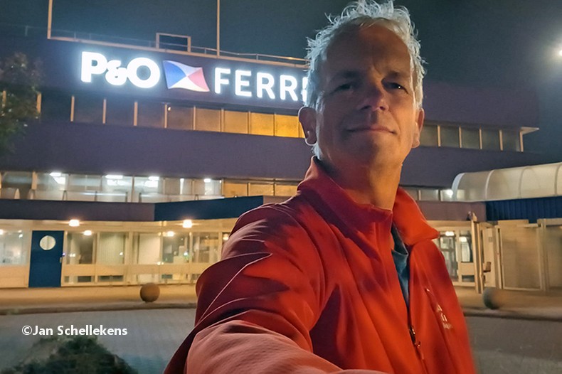 It’s a special day for me: my first stage on the (new) E8 section in my country, and it will be my my 60th birthday. After some very tiresome travelling to get to the starting point at Europoort I start at 23:20 from the deserted terminal: