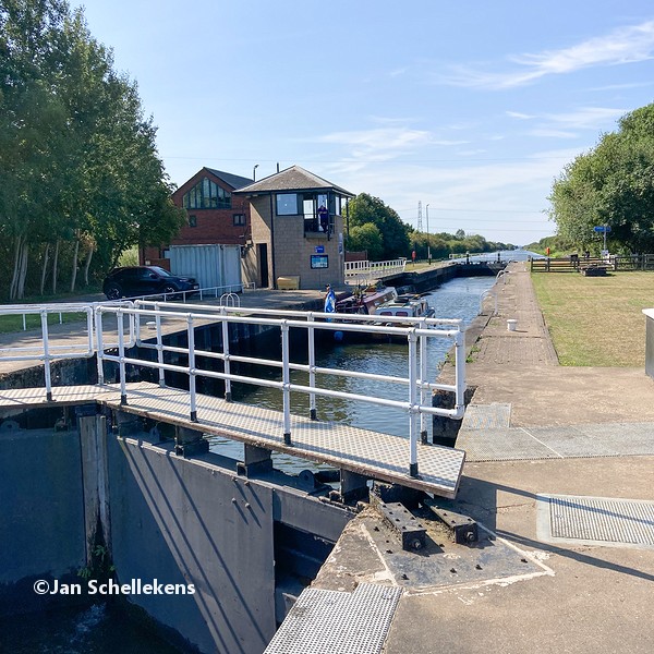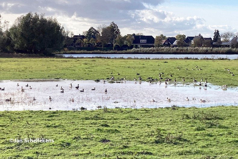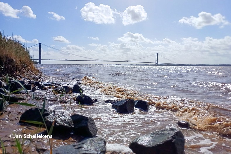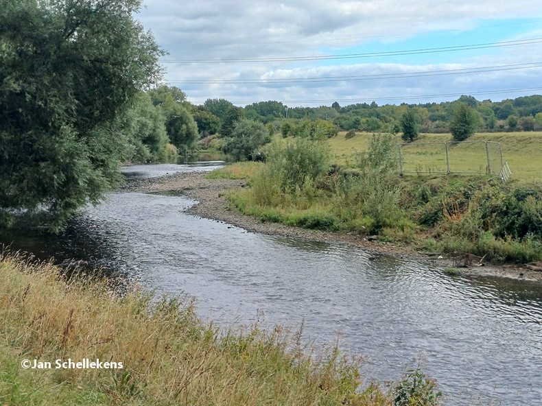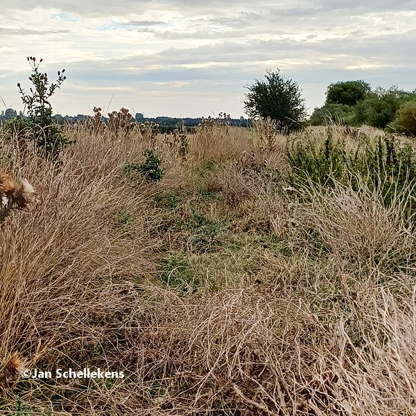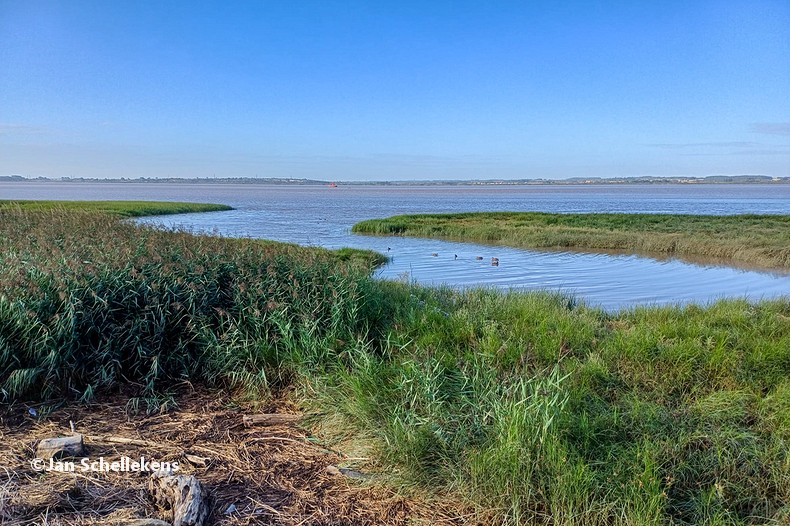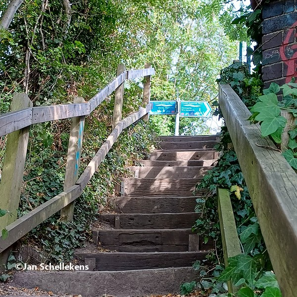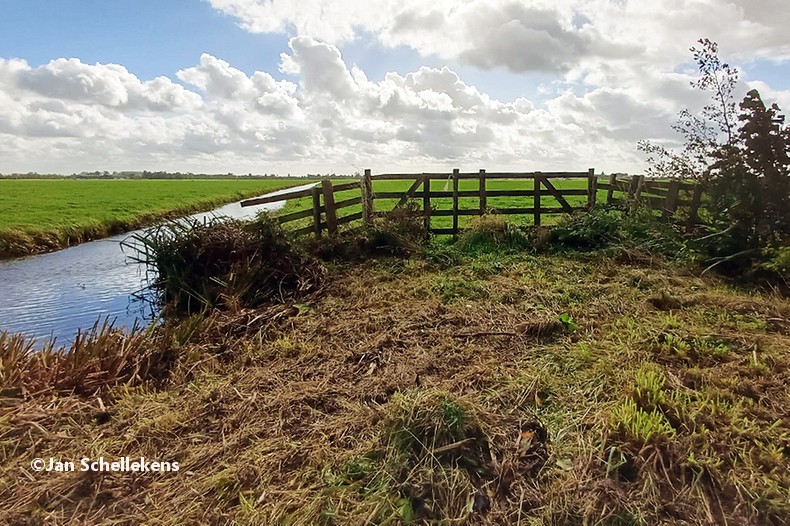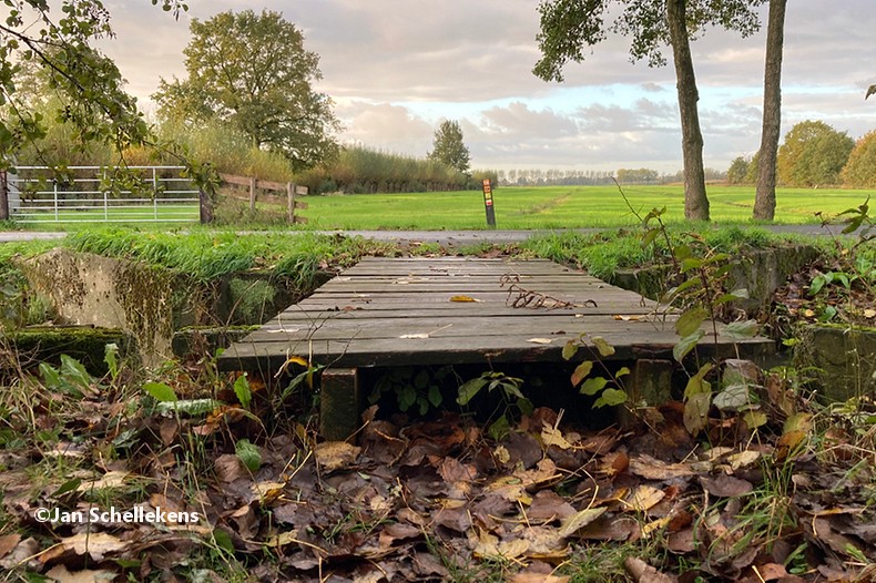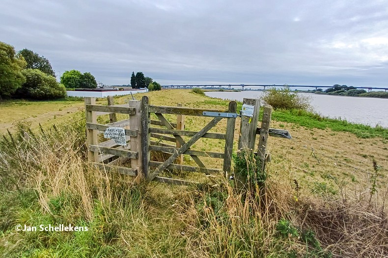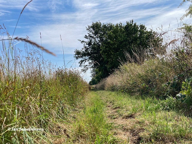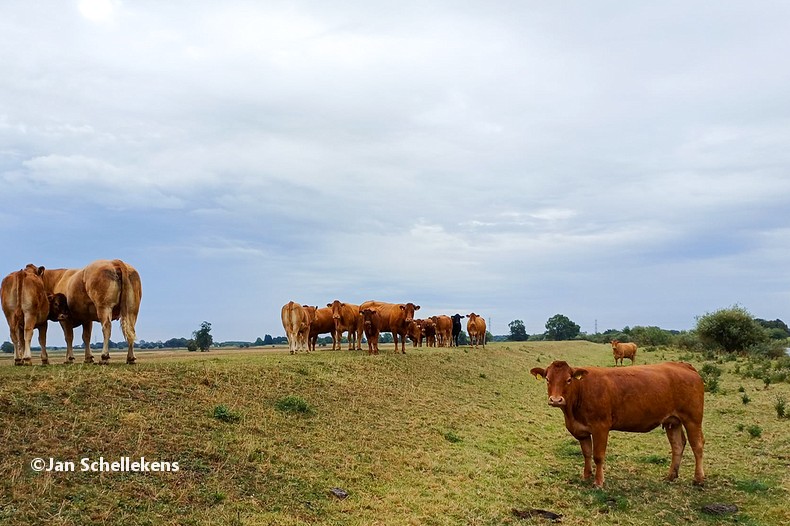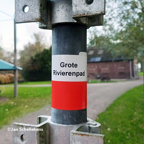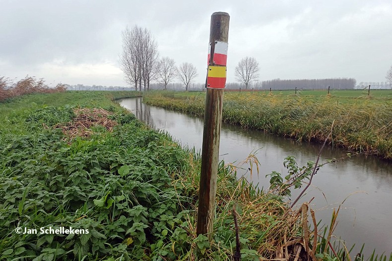 At approx. 34 kilometer the Johannapolder is being crossed, which is special for hikers. The soil of the river bank is at the same level as the average water level of the river. Since I am still relatively close to the North Sea, which has very strong tides, it means that the river bank is under water for parts of the day. Nowadays there are boards for hikers that enable them to keep their feet dry at any tide. I have chosen my starting time of this stage in such a way that I am at the Johannapolder during low tide.