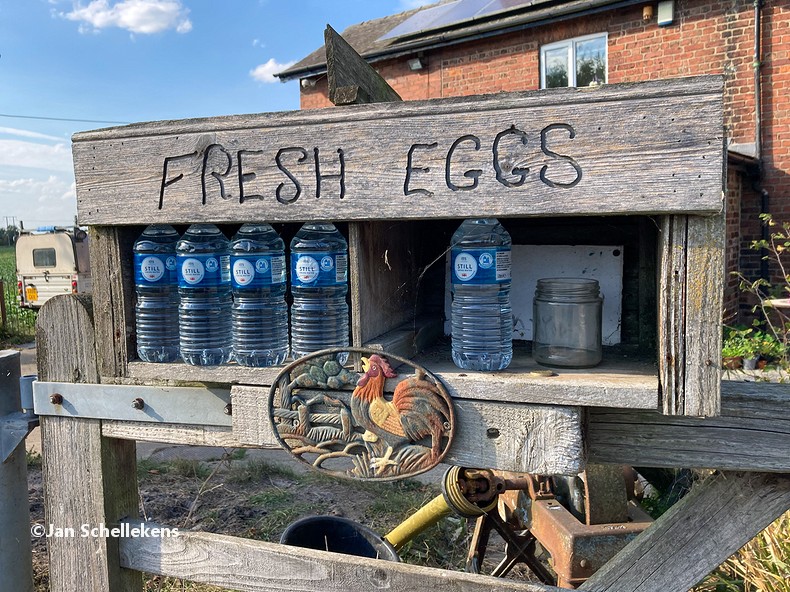 Once the day has really started the weather gets brighter and I enjoy the lovely temperatures. As I am going east I have the sun shining in my face, and eyes, for several hours, which becomes tiresome. The trail crosses the riverlandscape, which means no shield from the sun or the weather. It is lovely to be outdoors, having a gentle breeze as tailwind, but the temperatures are increasing. At 13:00, after hiking 61 kilometers in 13.5 hours, I arrive in the city of Alblasserdam, where my wife is waiting for me for my birthday lunch. We order pancakes and enjoy the view of the old inland harbor. After lunch she joins me for an hour during which we first go north along the river, where big ships are passing us all the time. At some point the trail goes to the right, eastbound, down the dyke into the polder. There are no cars allowed in this section and we see old windmills, everywhere we look. We entered the UNESCO site of Kinderdijk, where tens of traditional windmills (some are 200+ years old) used to work to keep the waterlevel in these low lands at the desired level. There is no noise, there is no wind, just the magical views on this beautful summer day. Truly magic!
