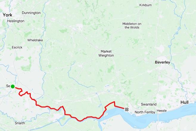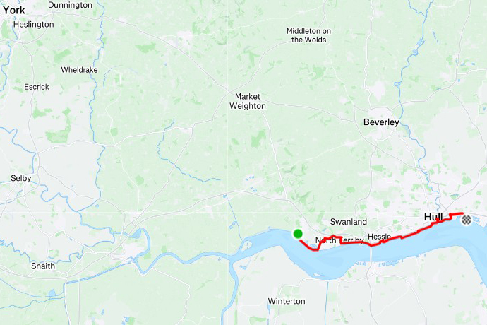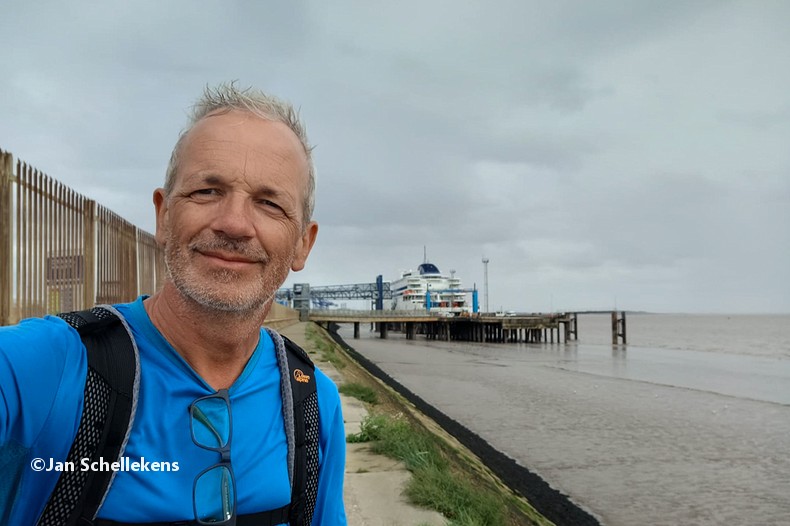 It’s a special day for me: my first stage on the (new) E8 section in my country, and it will be my my 60th birthday. After some very tiresome travelling to get to the starting point at Europoort I start at 23:20 from the deserted terminal: