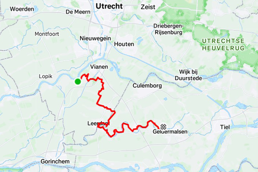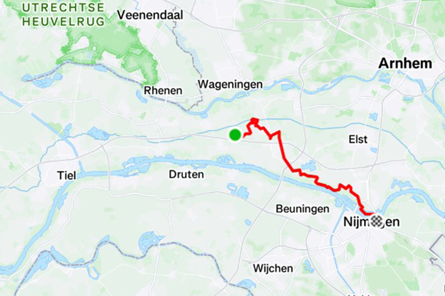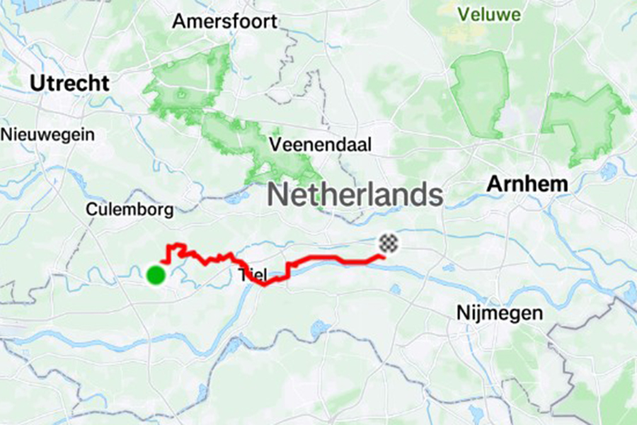 After the windmills the trail uses a ferry service to cross the river towards the next polder, which also has some trees and bushes that give some incidental shades. After 70 kilometers my daughter Linda joines me to support me in these difficult kilometers. By the time we arrive at the Loetbos forrest, after 74 kilometers, I call it a day. It was a wonderfull 60th birthday, truly unforgettable.