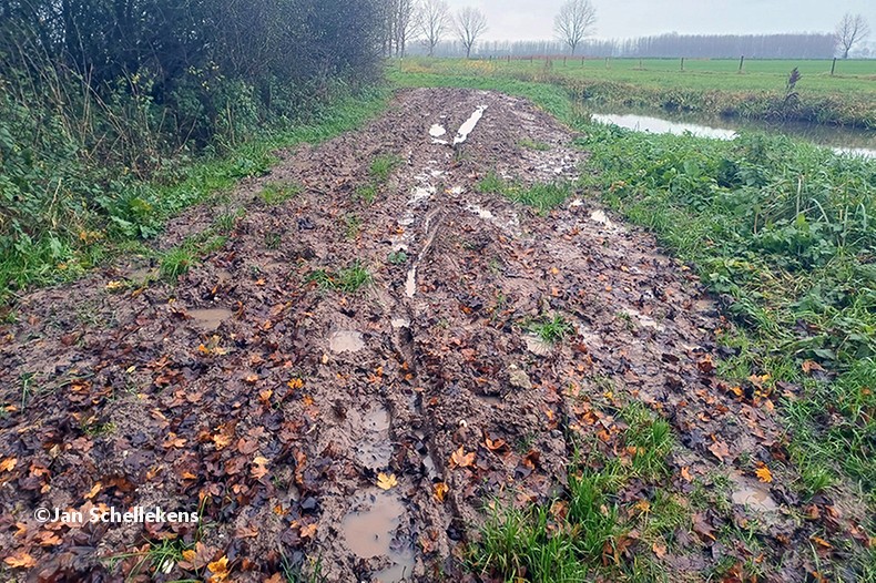 After I have passed the last boards there is still a section of approx. 50 meters that is still very wet and muddy, after passing this I continue with mud covered boots.
