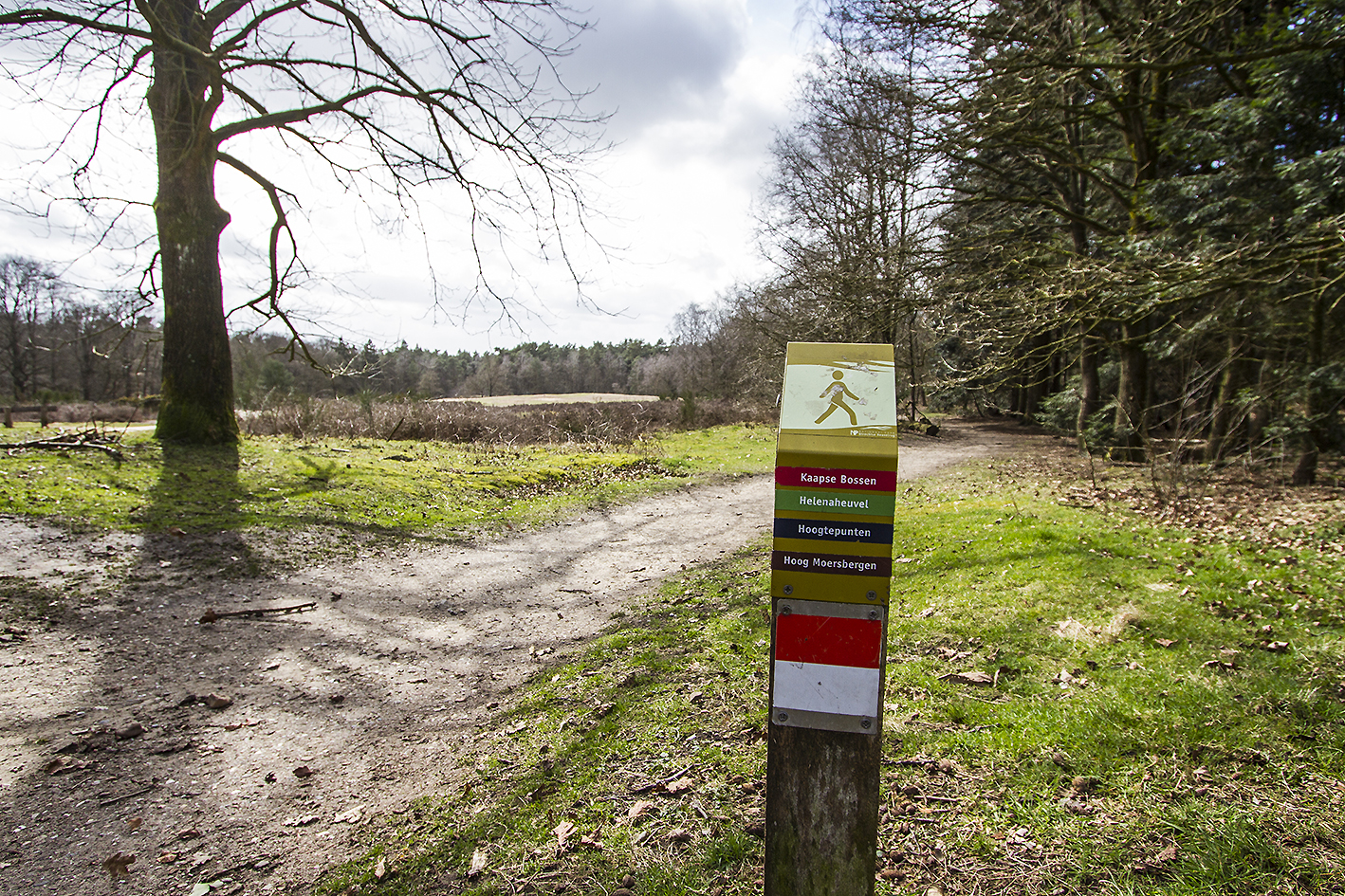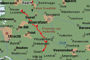 I pass the village of Soesterberg with its American army barraks, and shortly afterwards the Trail leads close by the pyramid monument of Austerlitz (approx. 10 minutes from the Trail). After passing the village of Maarn, the area gets even less flat. In this part of the stage I meet with some other Long-Distance-Hikers, but they are not the friendly type. One can recognize them by the guide in their hand, the focussed look in their eyes and the stressed expression. After passing the A12-highway near the village of Maarn I start the final section of today: the forrest towards the village of Doorn. The highest point of this forrest is the Sint Helena Hill. It sounds impressive but, to reassure other hikers, it is only 40 meters above sealevel (remember: we are still in the Netherlands!). The view from the hill is nice, and the descent towards Doorn is easy and quick.