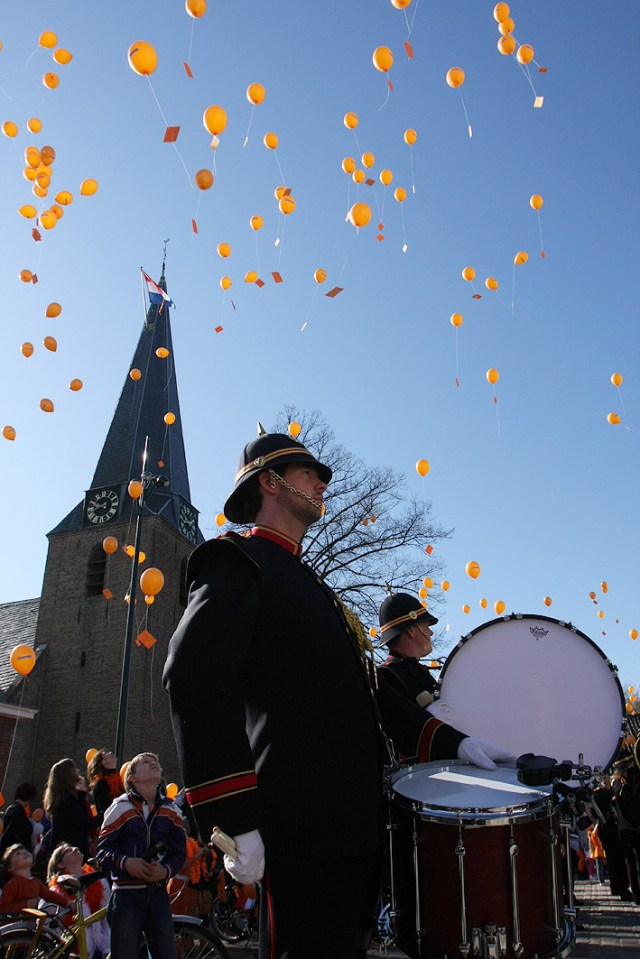 It is a magnificant day, with a nice walking temperature (approx. 20°). The last stage ended at the southern boundary of the Utrechtse Heuvelrug Hills. Today’s stage will take me into the so called riverland, with meadows, dikes and one river. In Doorn there are lots of festivities for Queensday which is celebrated today. There is a big band playing, kids are joining the parade, and many people are dressed up in orange, our national color.