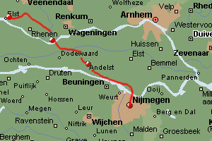 I had never been here before, although it is a very wellknown area in the Netherlands, due to historical (war) events. Some minutes later I cross the first big river of today, at the ferry The Blue Chamber. I walk through fields (incidentally through some woods) and along wide rivers along the villages of Opheusden, Hemmen and Zetten. The view has a long reach, which is very much appreciated on a gloomy day like today. Just before sunset I cross the famous Waalbridge and arrive in the city of Nijmegen. This is my last finish in the Netherlands. The next time I will be walking into Germany.