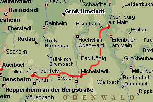 At 05.00 am I leave the camping site in Schlierbach and walk back up the hill to Lindenfels. In the peace and quite at the break of dawn in the early morning I get deeper and deeper in the forrests and hills of the Odenwald. There is hardly any hundred meter of hiking trail that can be called flat, but the hills are gently steep, and not too high, so altogether it should be nice to walk them up and down all day, if it wasn’t for the blisters. On my way eastbound I pass the hill Lärmfeuer (Noisefire) where I allow myself to have a break.