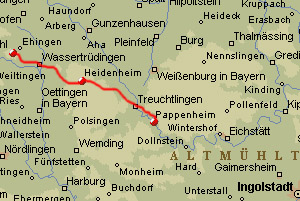 I start by walking down the Hesselberg, down to the village of Wassertrüdingen.
