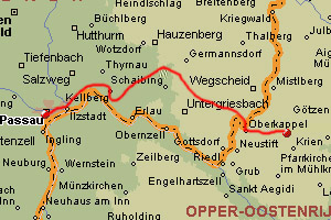 Starting there, I pick up the signs again, further eastbound. During the morning hours the weather is reasonably nice but it remains very chilly and cold. After 13 km, beyond the village Wingersdorf, I pass the memorial sign that states that the views from this spot has obtained “imperial approval”. It is so typically German to put up a sign like that, but I have to admit: the view from the small hill overlooking the surroundings is very nice. Afterwards the path leads through a deserted scenic area. The autumn colours make it look very beautifull. After passing the village Kropfmühl (23,5 km) my focus is fixed in the southeast direction: to the Austrian border. The weather has gone bad and it threatens to start to rain or snow. Sometimes the threatening stops. . . Along the way I chat a bit with the last German fellow that I meet with in Germany during the E8 and at 3.25pm, at 1.537,5 km from my starting point in Amsterdam, I pass the German-Austrian border. My E8 goes into its next phase. I walk another 5,5 km in Austria and decide, just before sunset, to spend the night on top of the Ameisberg hill (941 meter altitude).