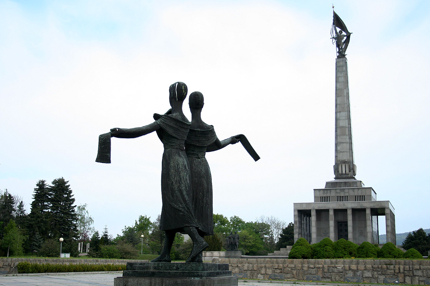 From now on I am on my own, using the maps that I have collected and any signs on the streets and trees. Just outside Wolfstal is the Köningswarte hill, which is recorded as the most eastern “mountain” in Austria. I had in mind to climb this hill while passing it (takes approx. 25 minutes extra), but due to the very dense fog that allows only a view of 200 meters I skip the option. Along the busy street I walk towards the border. At the Austrian-Slovakian border no customs officer is interested in a guy that crosses the border on foot, same as with my previous border crossings. The cycling path that I use continues into Slovakia. First it follows in parallel the highway, later it crosses the suburbs of Bratislava. My stage ends at the national monument that is situated on a hill overlooking the city centre. Over here there is only 100 meter view.