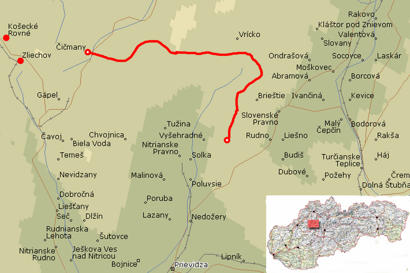 It is very busy with big trucks driving in both directions. The road is not wide and when it was designed nobody included a pedestrian in the plan. I go left, to Jasenovo, which is only some 20 minutes. At home I had prepared some bus time tables, including the one from jasenovo to Turcianske Teplice, the nearest small city. At 5.00pm the bus pickes me up, exactly according to schedule. By that time the sun has disappeared behind the hills, and it has turned cold outside. After some 20 minutes it drops me in Turcianske Teplice. On the map it shows as a mid-sized (Slovakian) city and I am apalled by the lack of infrastructural design. The railway station is at the end of a shabby street where here and there some houses are situated, between unused land. Walking towards the rest of the city there is more unused land, also next to some supermarkets, or busy roads. Also the central busstation is situated in the middle of a residential area. It is almost dark when I arrive there. I find myself a small hotel near the busstation and have dinner in the pizzeria next door.
