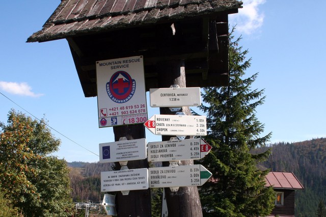 Today is the last day of my two-day hiking trip. Although this is an official mountain refuge any West-Alpine situations are unheard of. No climbers that get up at 1.00am or 2.00am to prepare for their big climb. Over here the breakfast is served as of 8.00am. Today, I am the first who gets his. I only have a short stage ahead of me, going down to the pass of Certovica, where the next bus stop is situated. I would have time enough to do some more kilometers, but after Certovica the Trail enters into the eastern part of the Lower Tatra, which are not so well exploited as the western part. Between Certovica and Telgart there are almost 40 kilometers of the Trail to be done, but without break or return possibility along the trail. I will have to leave the eastern part of the Lower Tatra for the next trip.