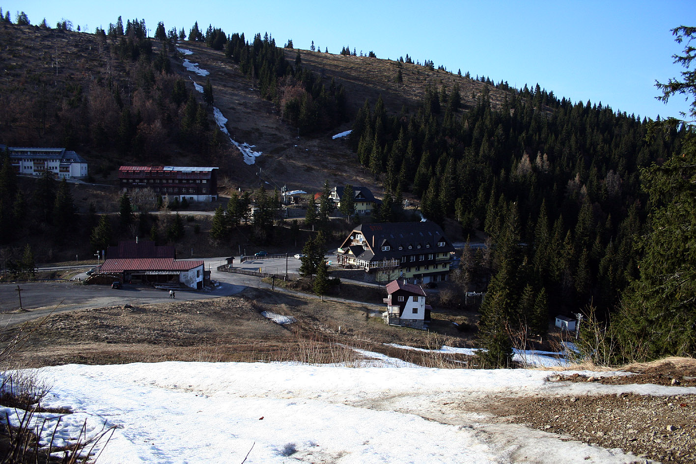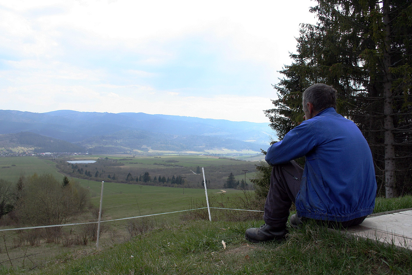 Half an hour later I make a lunch stop and I try to dry my shoes and clothes. I am very disappointed, but it would have been senseless and dangerous to continue. I continue my way down, in the meantime studying the map for a place to stay. If I could find a place to stay somewhere on the mountainside I could make another attempt tomorrow, with dry shoes and all. I could leave very early and make sure that I am at the Oravcova pass at 5.00am when the daylight break in. That would leave me the whole day to cross the rest of the Lower Tatra. If it was not for the snow, that will not be gone tomorrow. The first pension kind of place that I find is a holliday resort for kids. It is closed and the owner does nothing but enjoying the view (which is spectacular from here, I must admit).