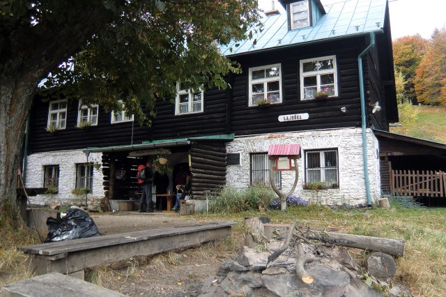 The weather is okay when I leave the hotel around 8.45am. There is a lot of overcast, but it is not expected to rain today. From Zlata Idka I walk up the hill again, back to the ridge of the hills that surround this valley. Once up on the ridge again, the Trail is easy to follow, also because the signs are in good quality. In the first hour of today’s hike there are a few hikers coming from the other direction. They have probabely stayed in the refuge Chata Lajoska. When I arrive there I take a break. There is much activity going on; people that have stayed the night are leaving, daytrippers are coming up from the valley, many mountainbikers are passing by, or just riding up and down to the refuge.
