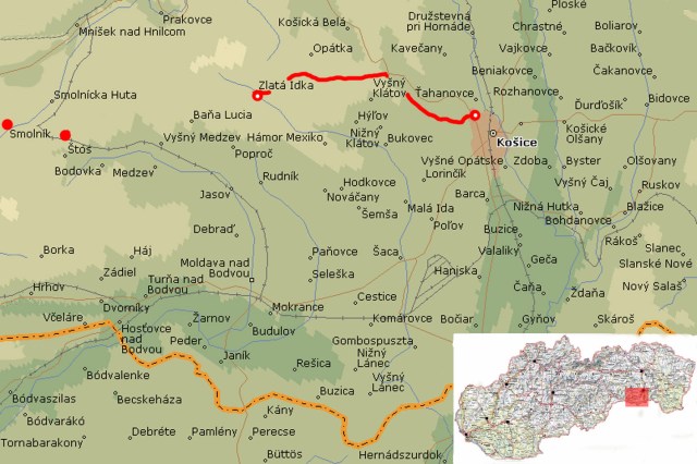 Unfortunately, the Trail does not lead gloriously through the city centre, but leaves Cermel/Kosice immediately northbound. From Cermel I take a bus and a tram to get to the central railway station. I have a few hours to spend in Kosice as I will be taking the night train back to Bratislava.