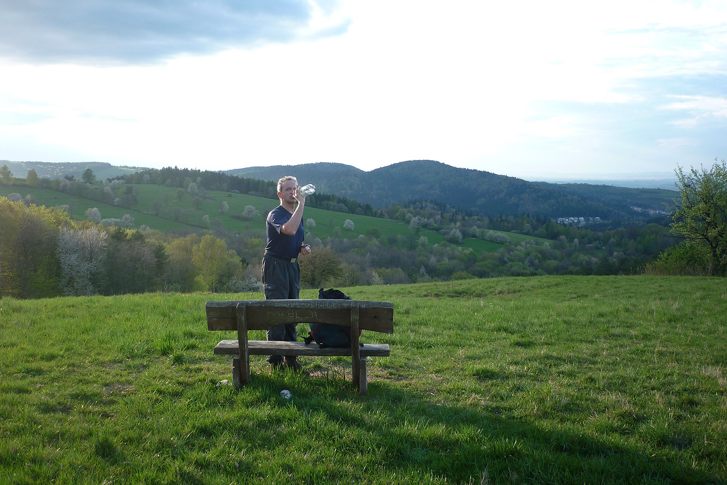 I start at 15.10 in front of the small grocery shop. After passing the church I turn right, up the hill towards Zdroj. The weather is nice with some hazy sunshine and warm temperatures. The views to the west and south are very nice.